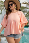 Apricot Pink Plus Size texturovaná blůza Babydoll s širokým krátkým rukávem