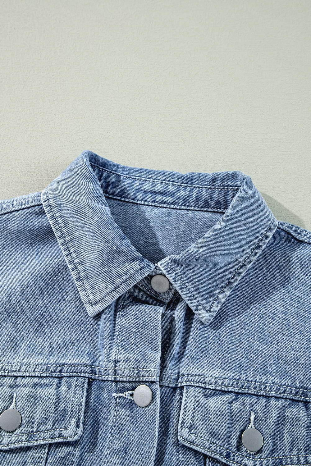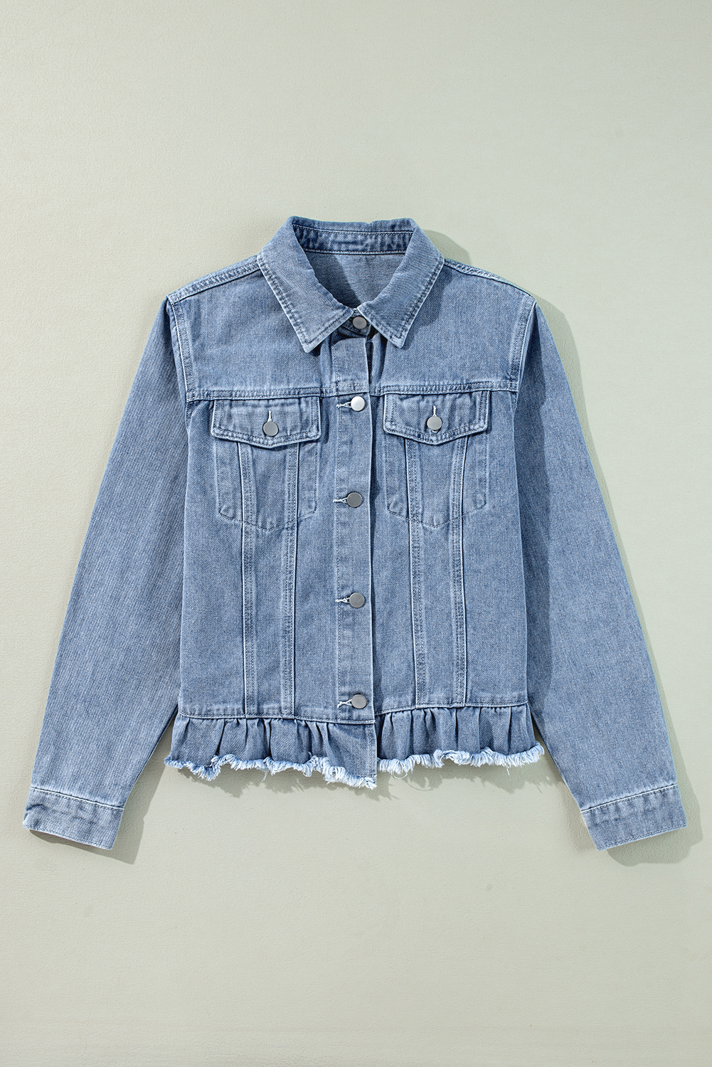 Džínová bunda Beau Blue Ruffle Raw Lem s klopou Kapsy