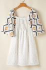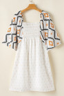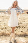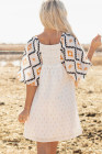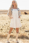 Béžové západní aztécké volné mini šaty s plisovaným čtvercovým výstřihem
