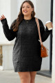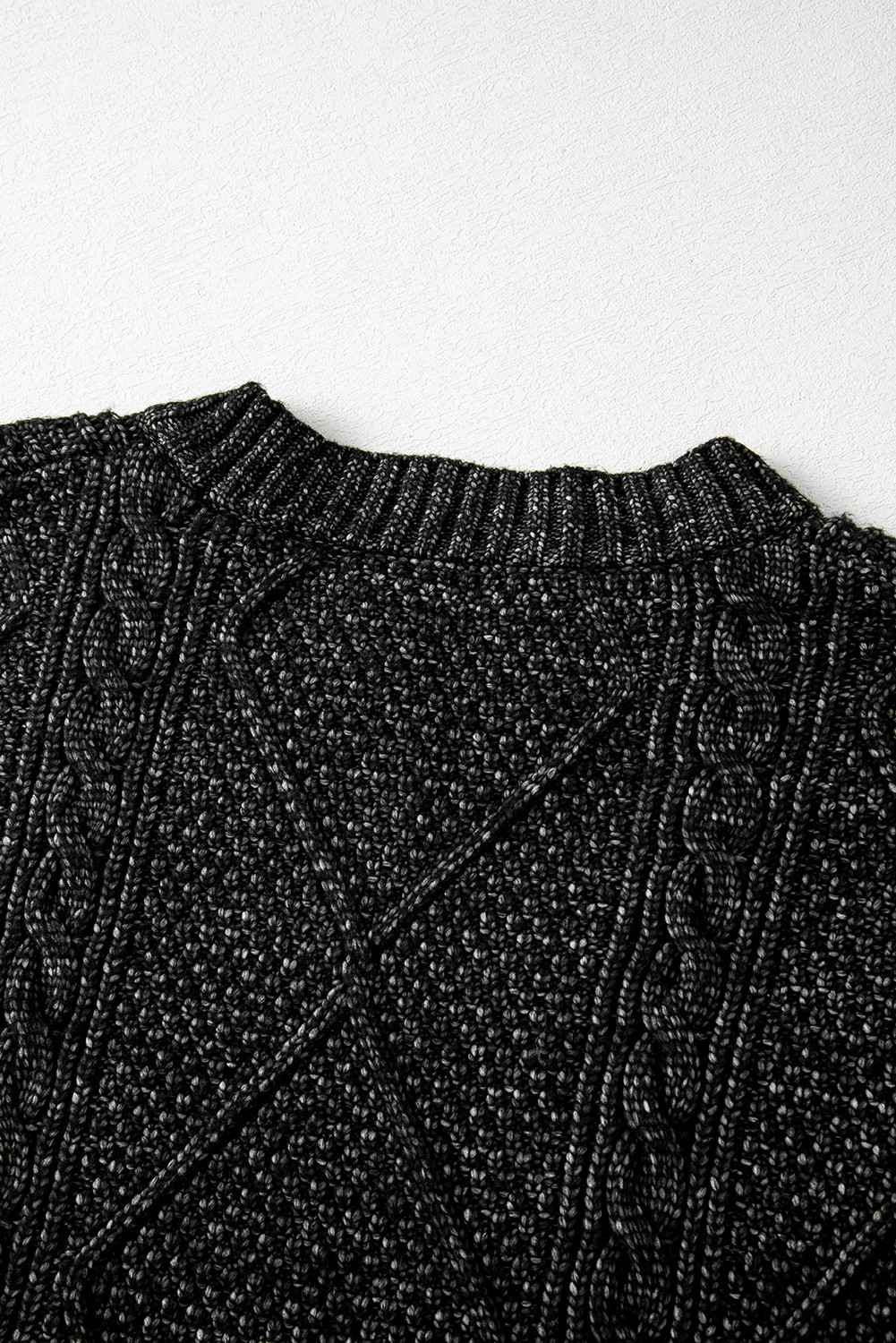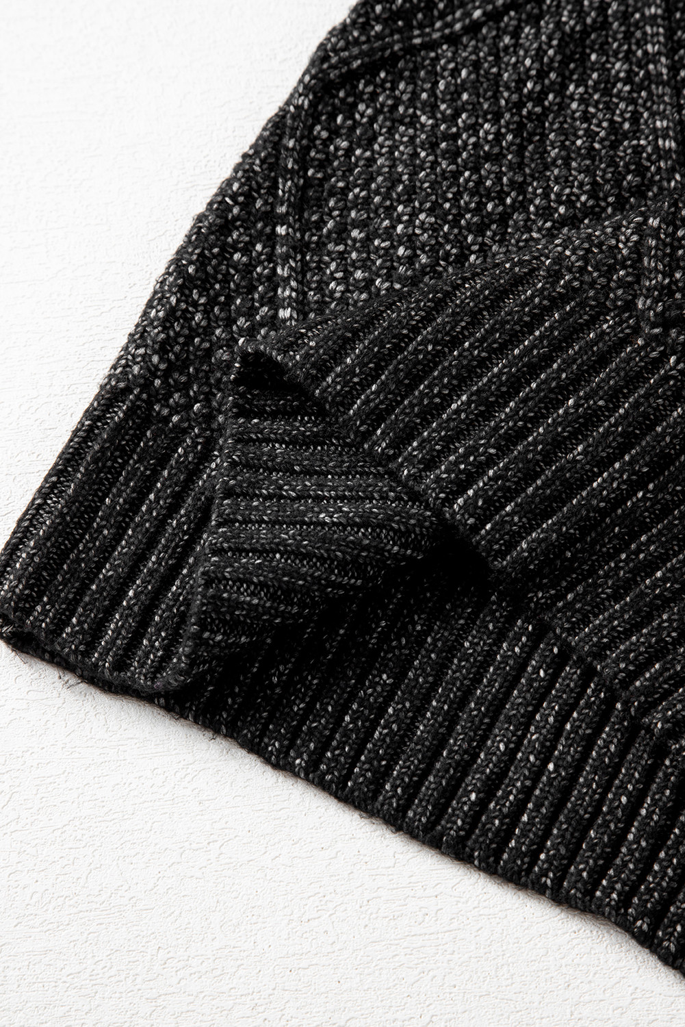 Černé kabelové pletené svetrové šaty s volnými rameny