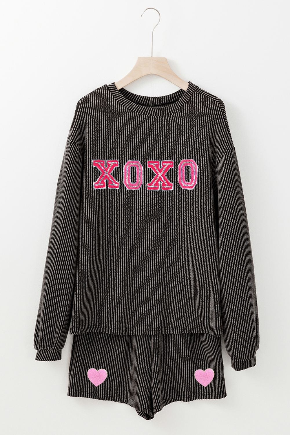Karbonově šedá sada šortek XOXO s dlouhým rukávem se šňůrkou