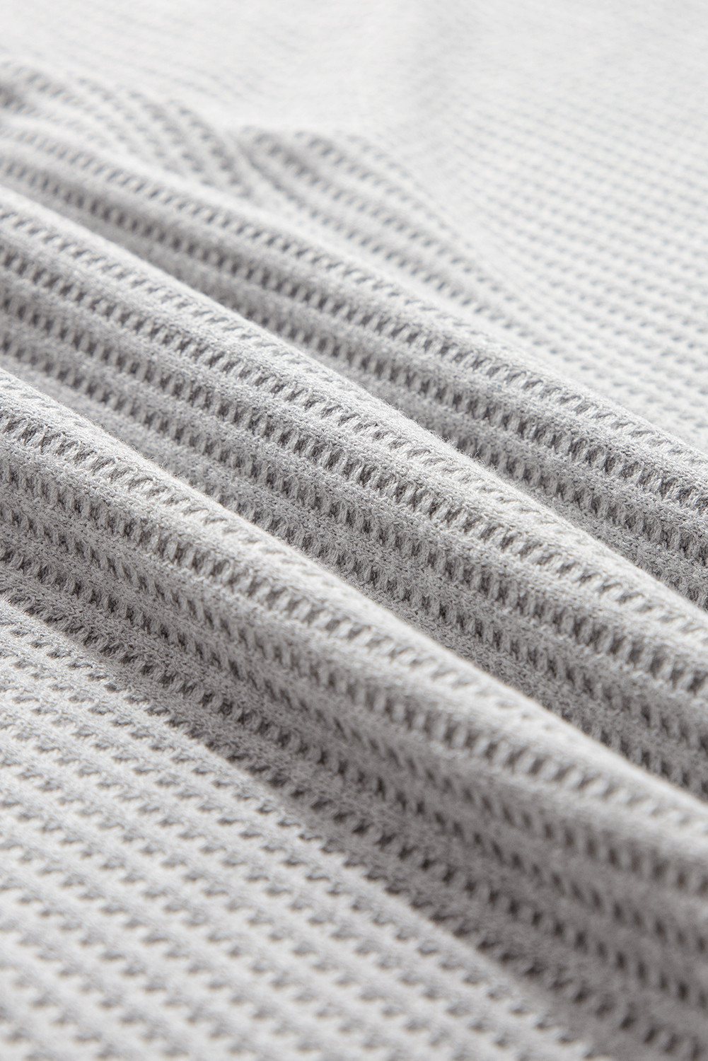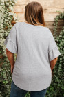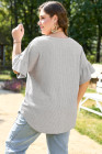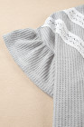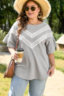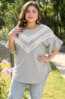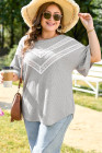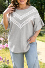 Světle šedá krajková vložka Vaflový volán s krátkým rukávem Top větší velikosti