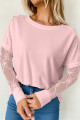 Světle růžové jednobarevné tričko s dlouhým rukávem a mašlí