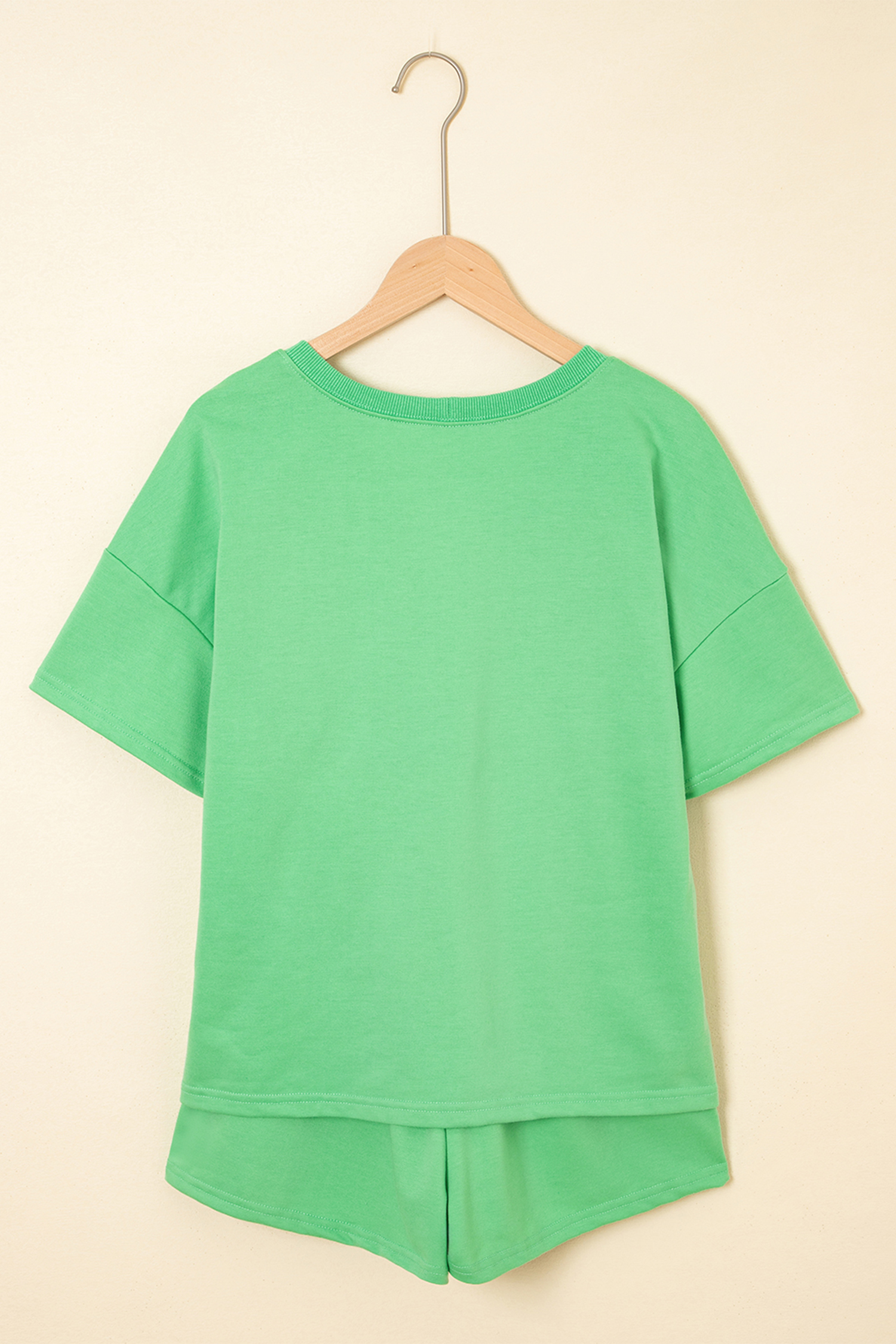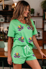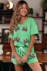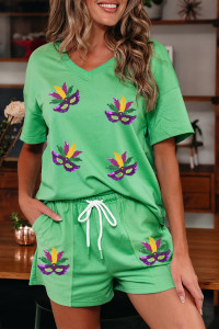 Mátově zelené flitrované tričko s výstřihem do V na Mardi Gras, kraťasy se stahovací šňůrkou, 2 ks, outfit