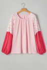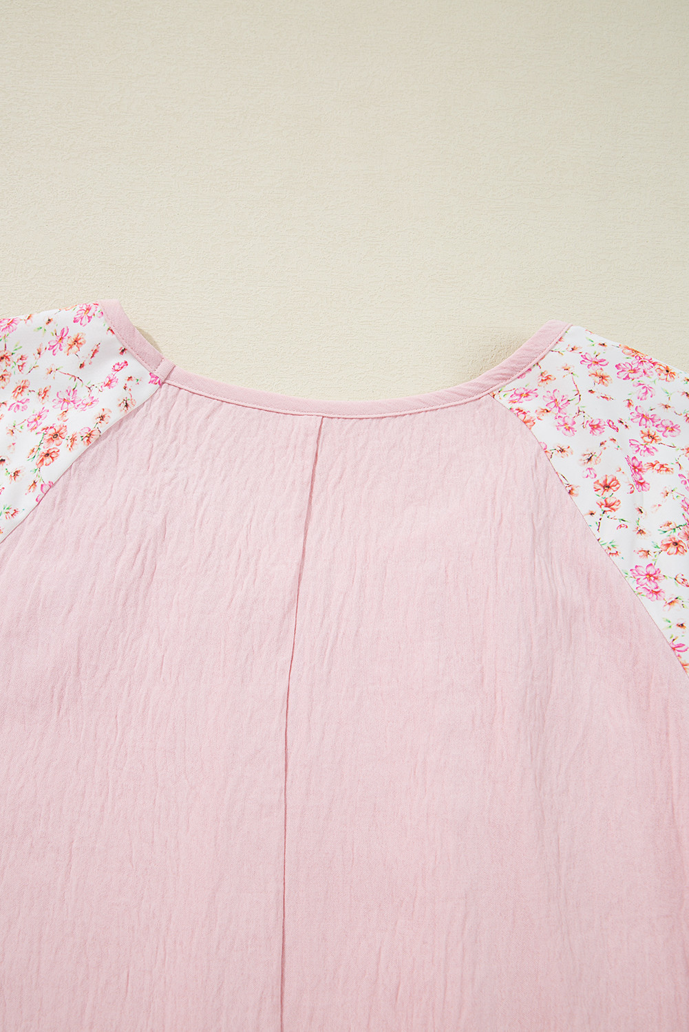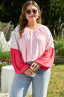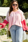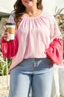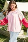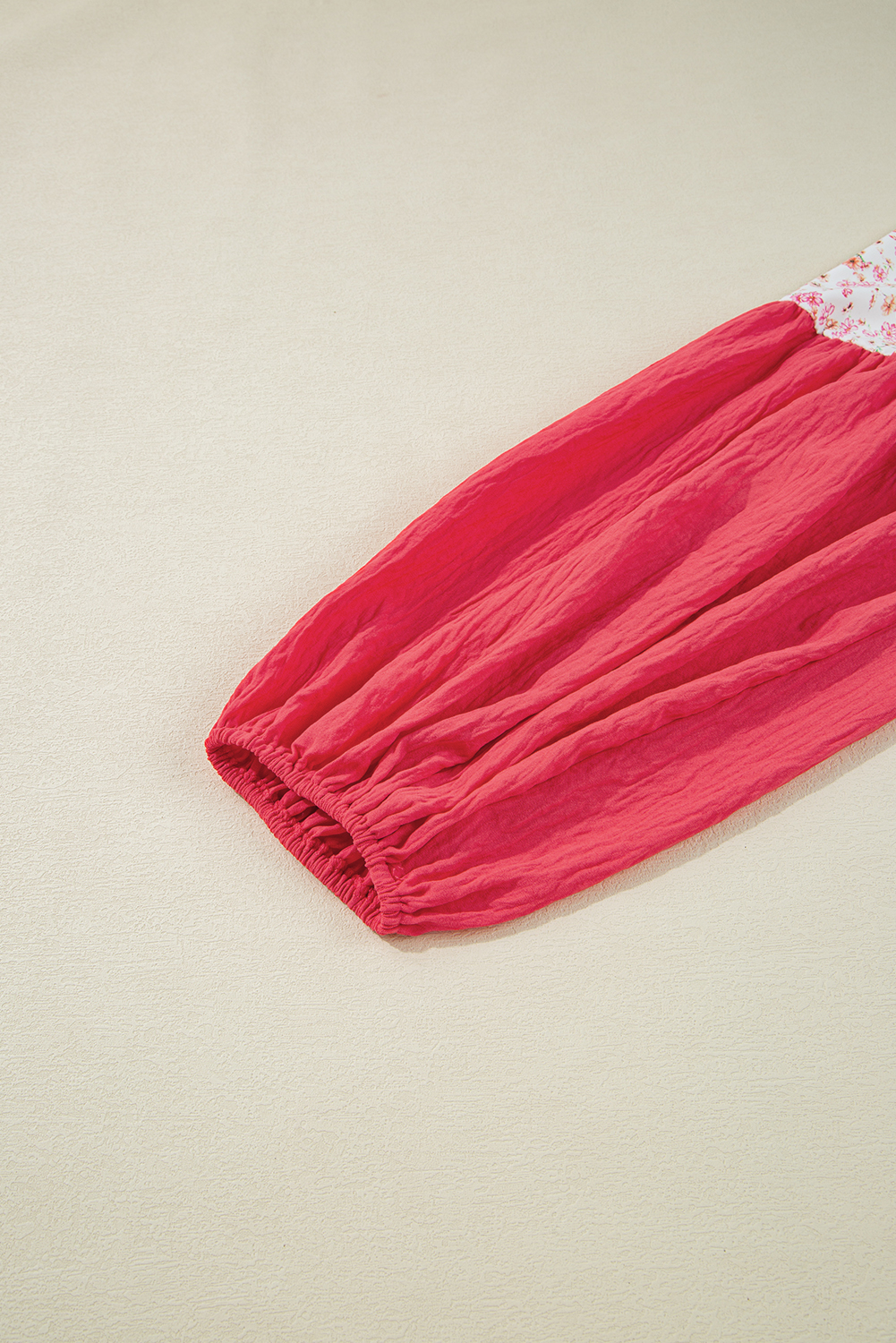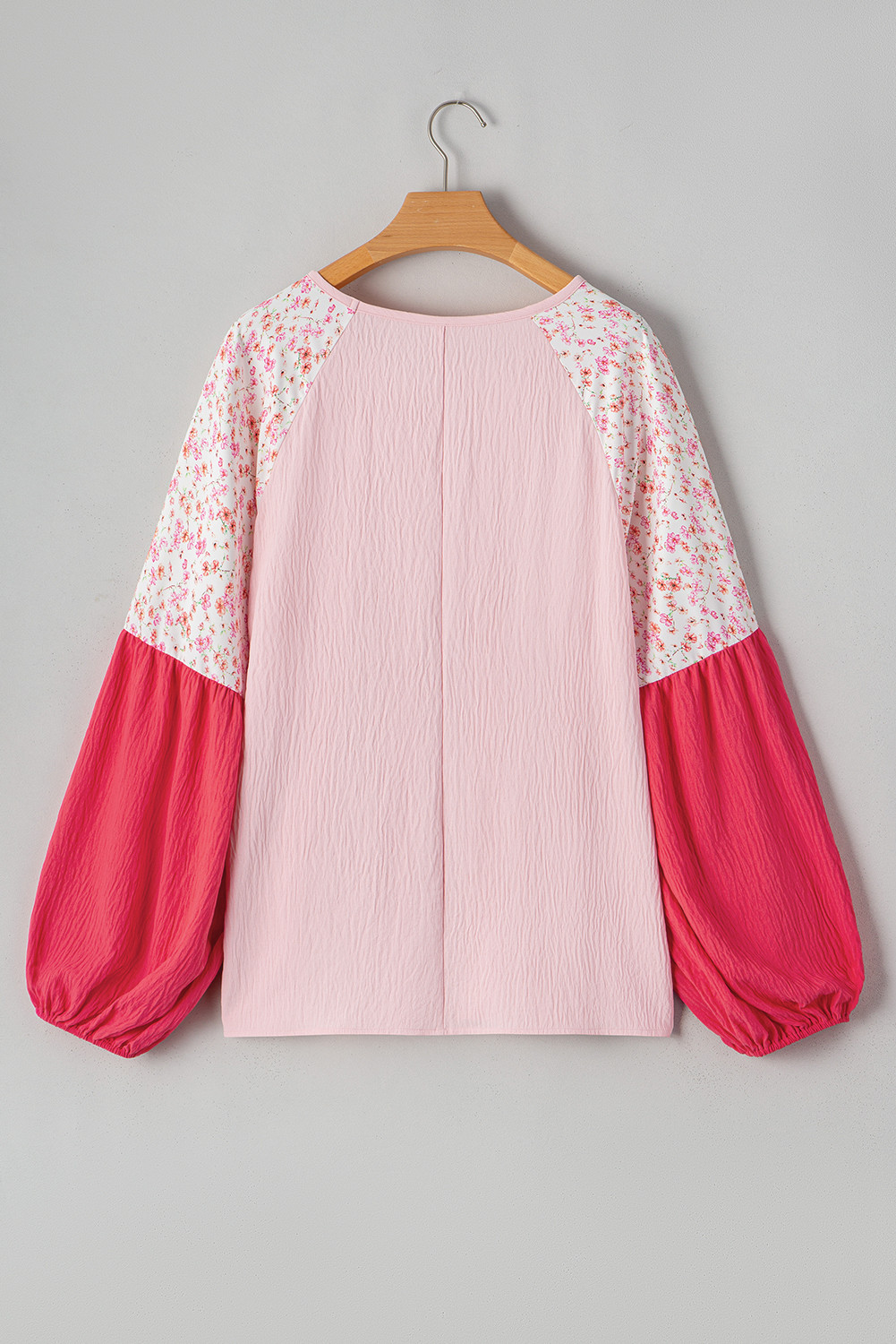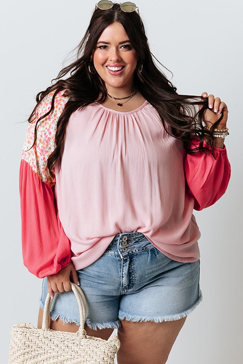 Růžová kontrastní květinová halenka s dlouhým rukávem větší velikosti