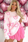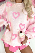 Růžový svetr s bublinkovým rukávem ve tvaru srdce