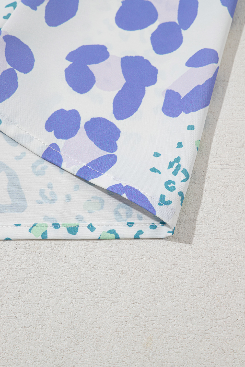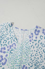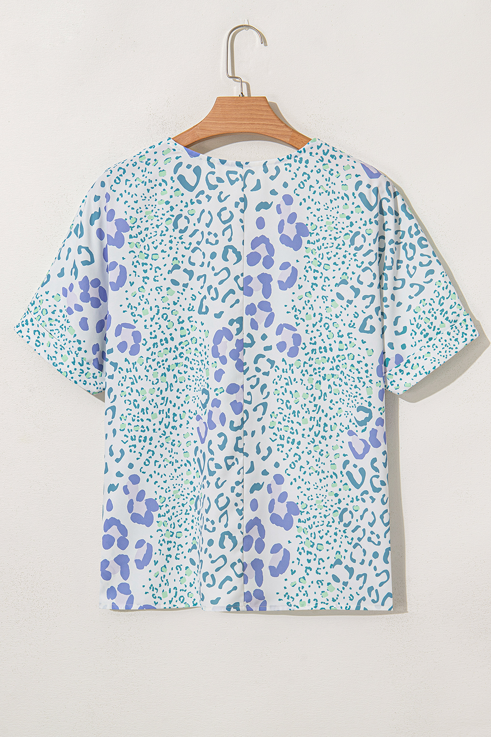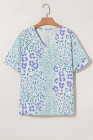 Blůza s krátkým rukávem se smíšeným leopardím potiskem s výstřihem do V nebesky modrá