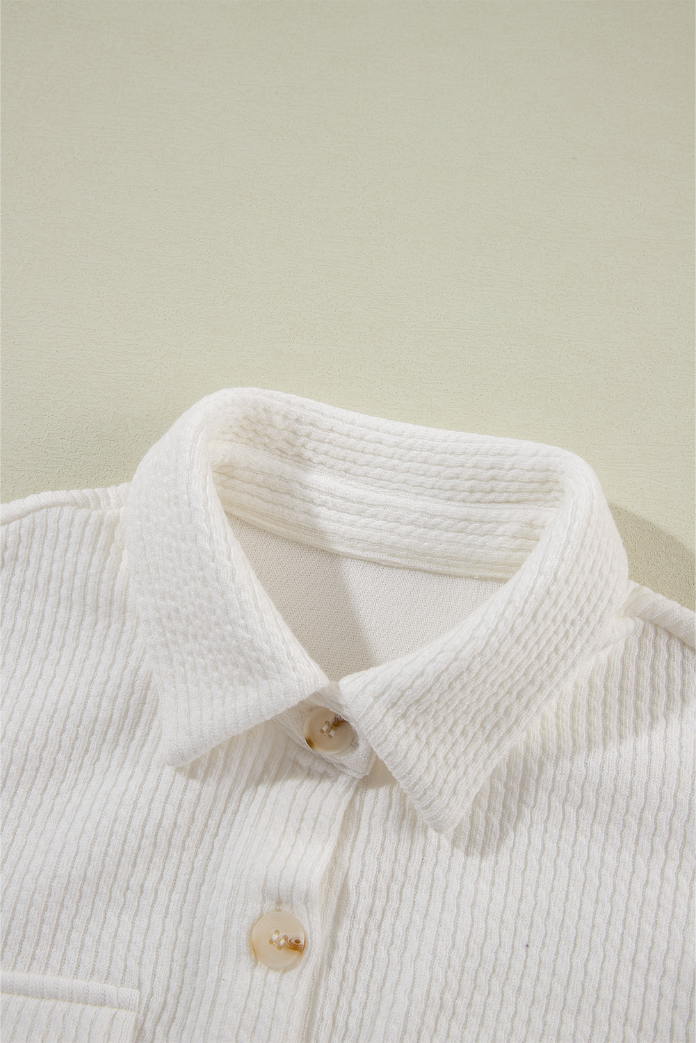 Bílá jednobarevná manšestrová bunda s dlouhým rukávem