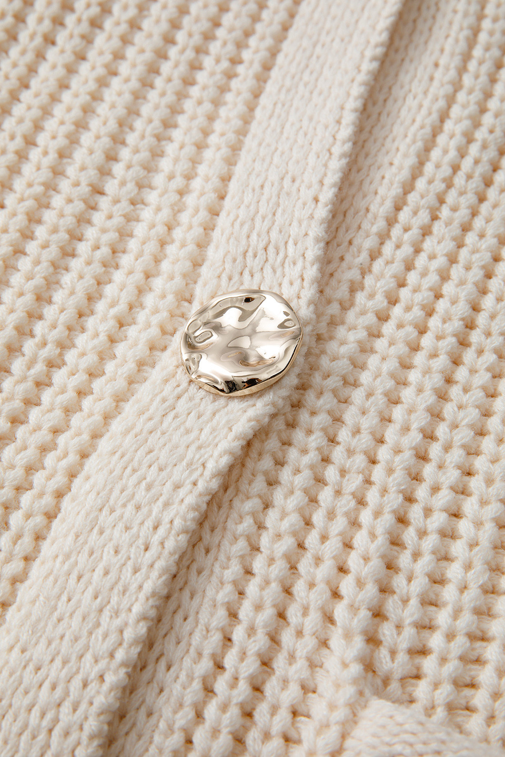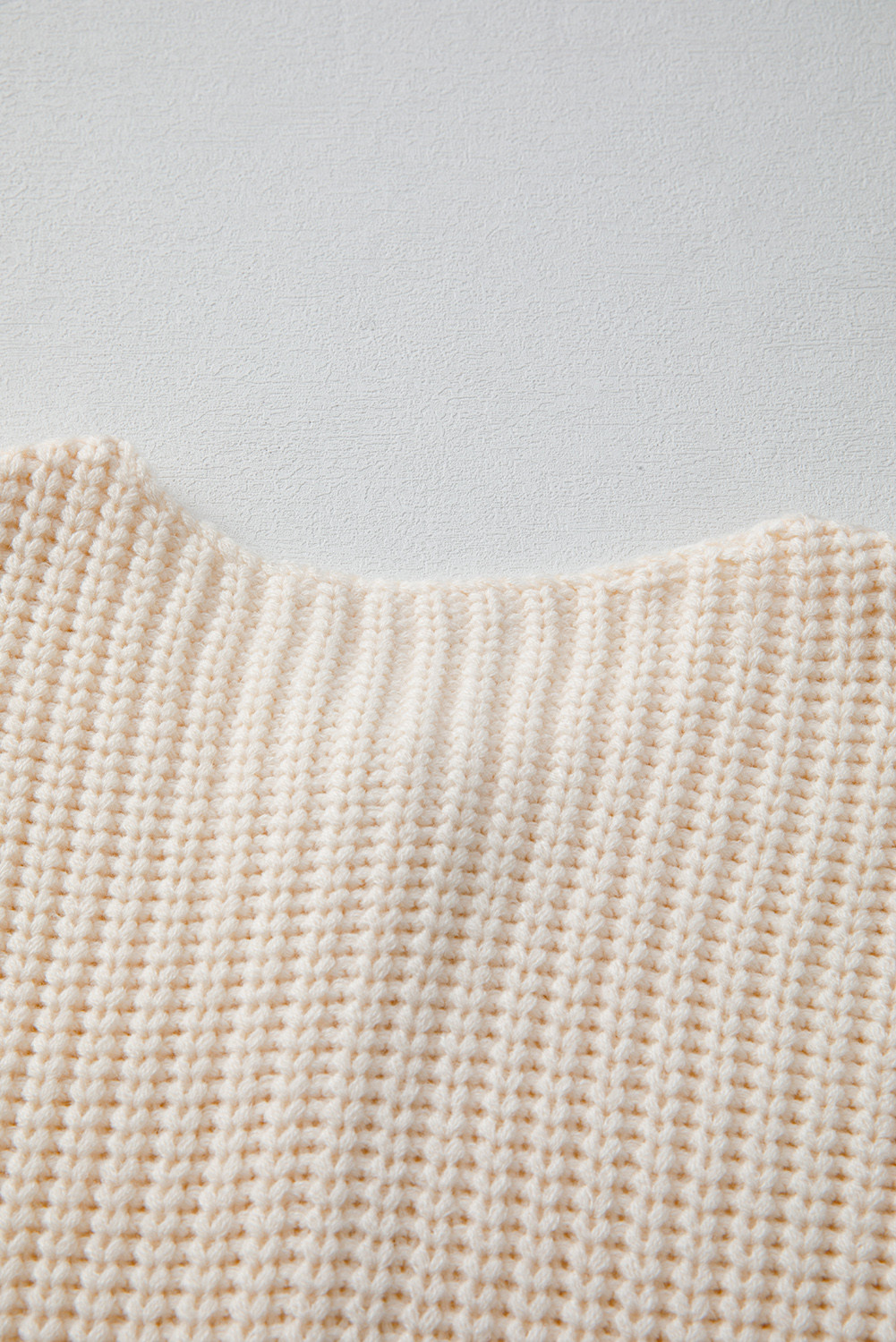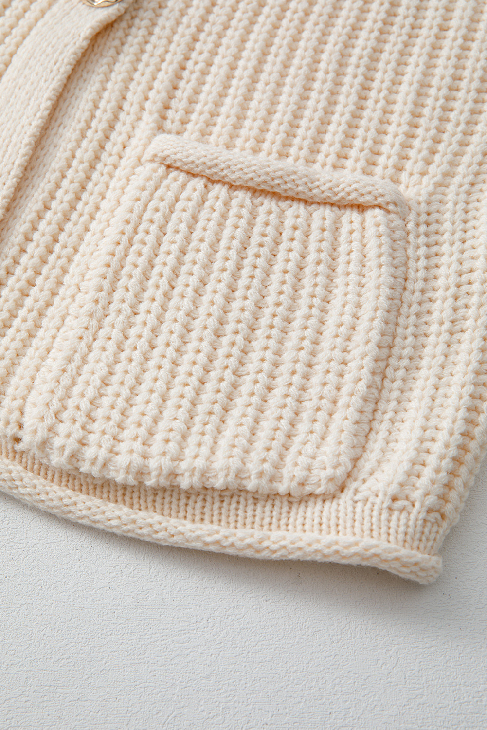 Bílá svetrová vesta z masivního úpletu s bočními kapsami na knoflíky